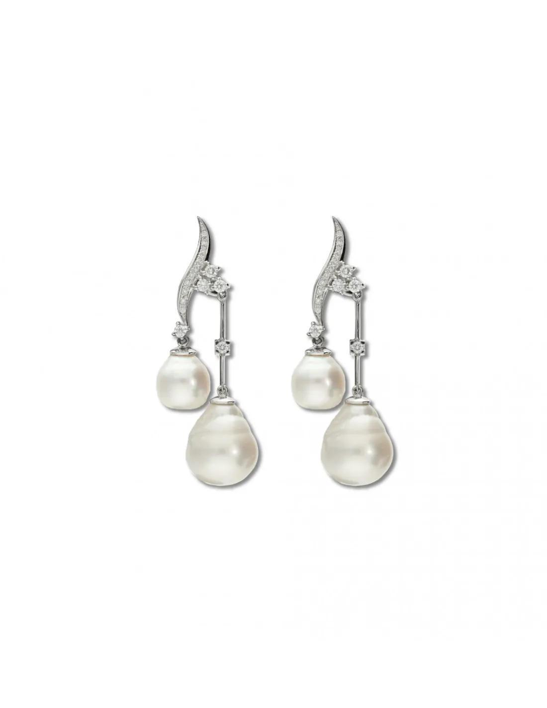 PENDIENTES ORO BLANCO, DIAMANTES Y PERLAS