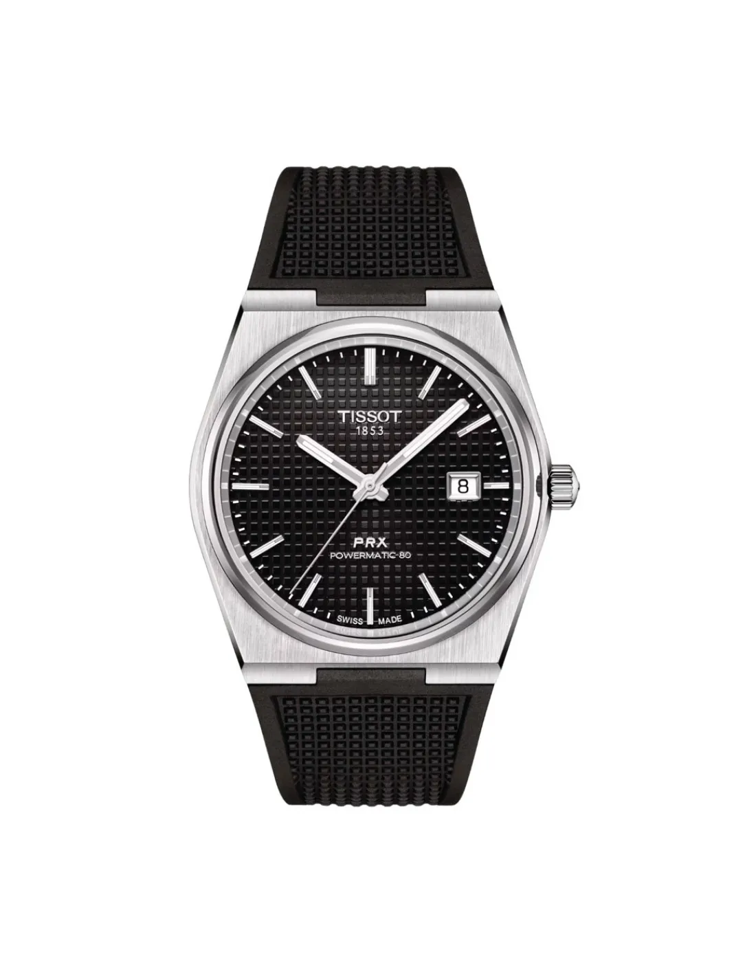 Reloj Tissot PRX Powermatic 80 T137.407.17.051.00 para hombre con caja de acero, esfera negra con índices y agujas superluminova y correa de caucho negra. Movimiento automático Swiss Made.