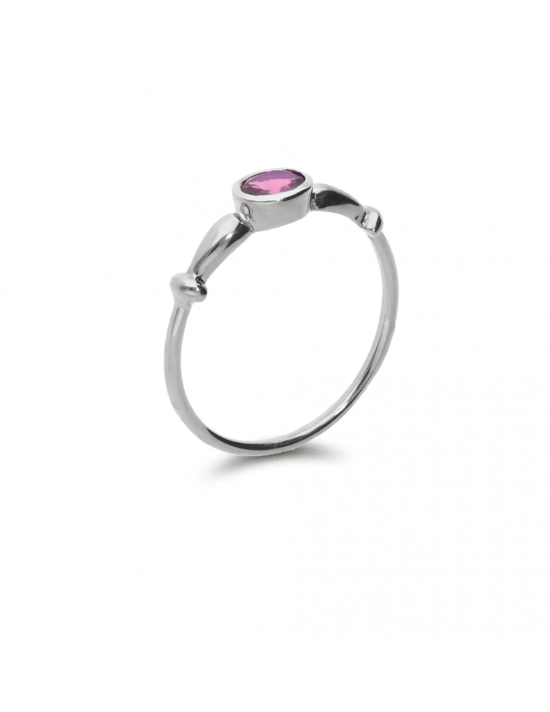 Anillo de oro blanco 1ª Ley (750 mmas) estilo minimalista con zafiro rosa talla oval en el centro. Talla 14.