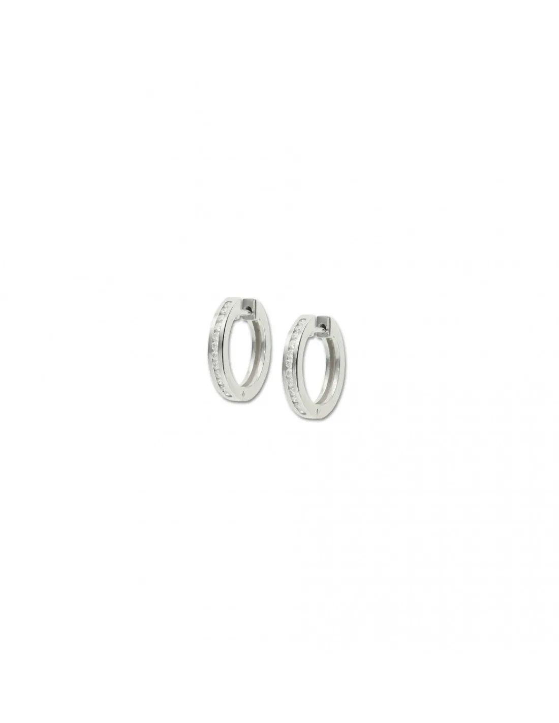 Argollas de oro blanco 1ª Ley (750 mmas) con forma redonda y diamantes talla brillante engastados en carril en la parte frontal.
