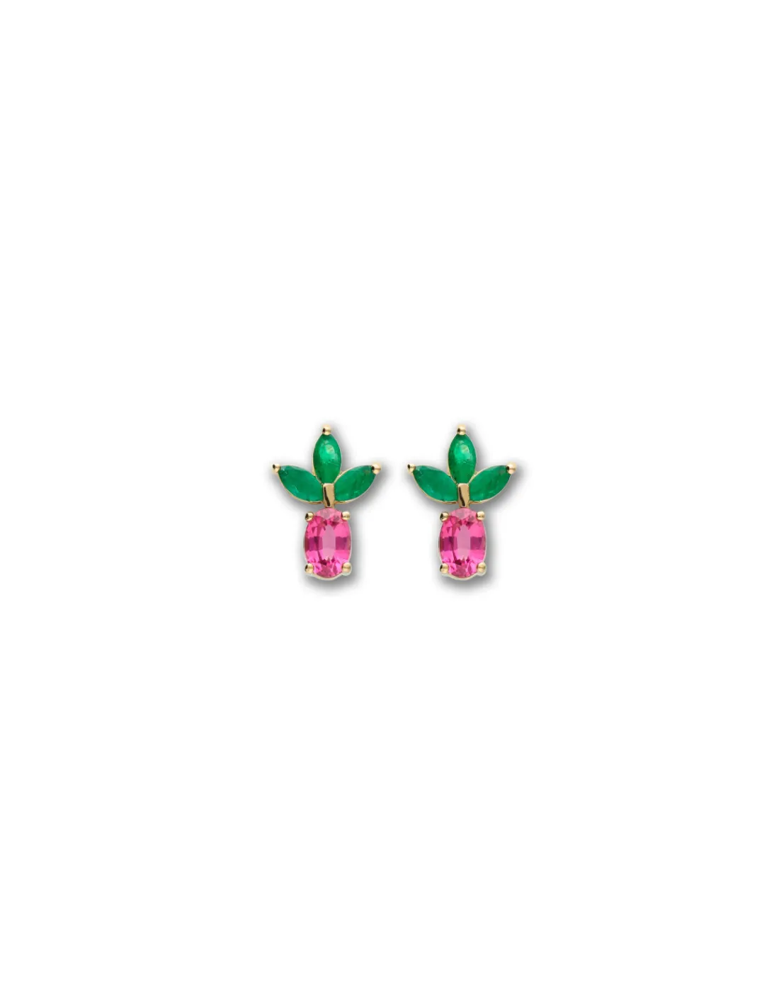 Pendientes de oro amarillo 1ª Ley (750 mmas) combinados con esmeraldas y turmalina rubelita. Una pieza juvenil llena de contraste de color.