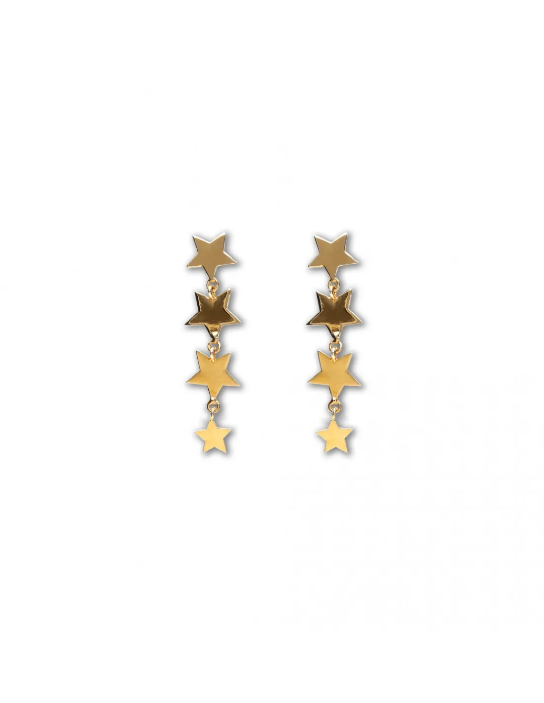 Pendientes de oro amarillo 1ª Ley (750 mmas) con varias estrellas que cuelgan en movimiento.
