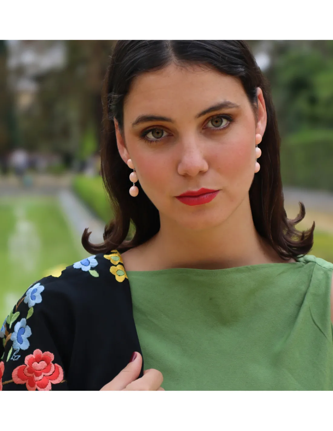Pendientes de oro blanco 1ª Ley (750 mmas) y coral piel de ángel. Un pendiente con tres corales que cuelgan y aportan movimiento.