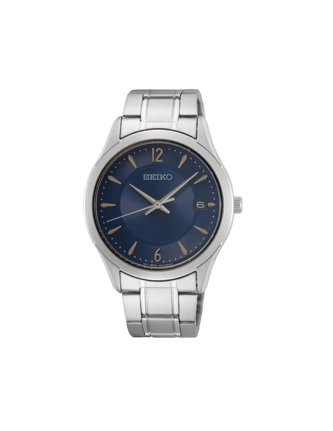 Reloj Seiko Neo Classic Easy Removal con caja de acero de 30 mm de diámetro, esfera azul y brazalete. Un reloj estilo clásico ponible para cualquier ocasión. Movimiento de cuarzo.