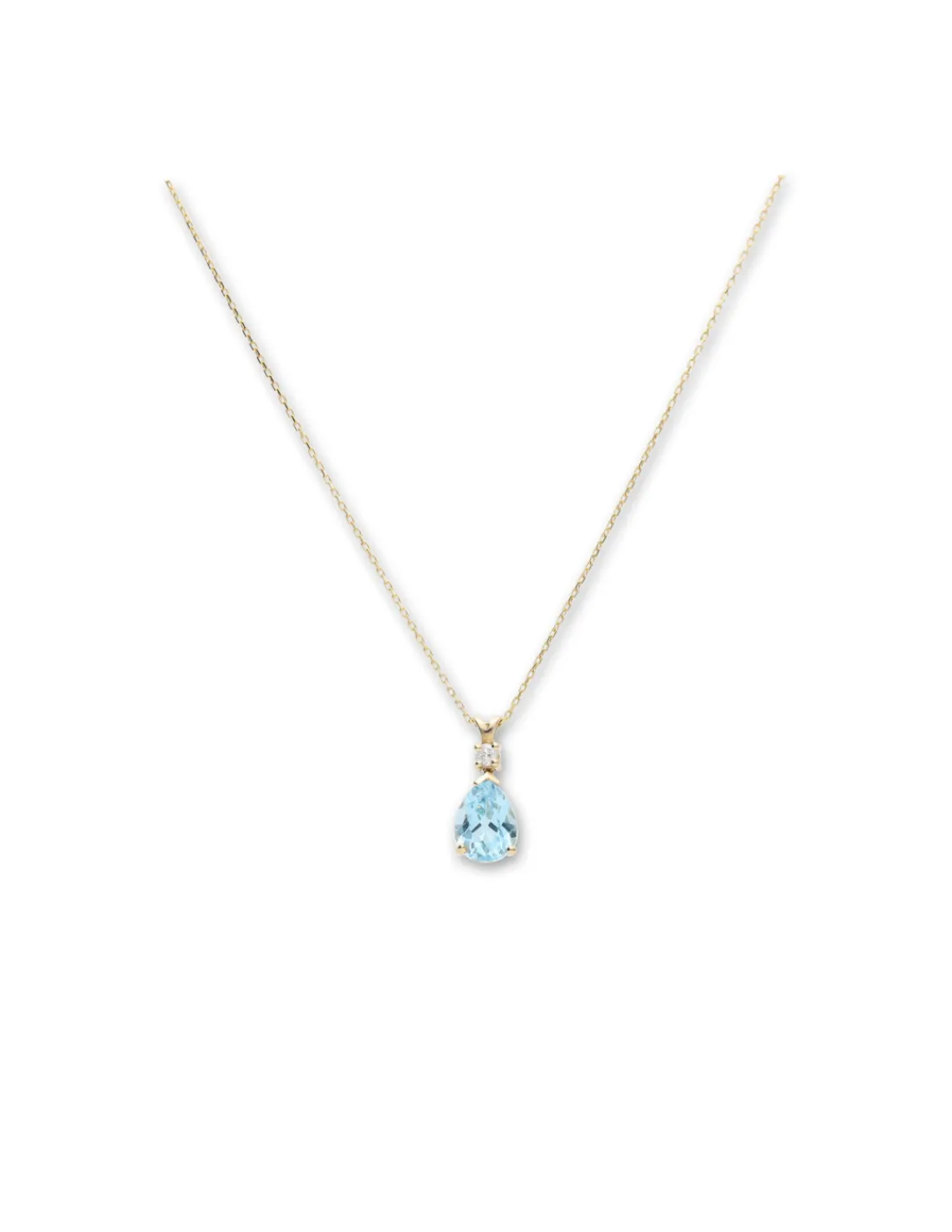 Cadena-Colgante de oro amarillo 9 kt (375 mmas) con diamante talla brillante y topacio talla pera.