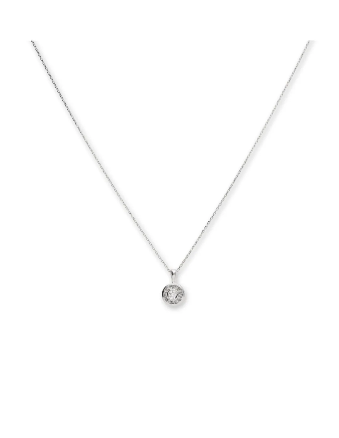 Cadena-Colgante de oro blanco 9 kt (375 mmas) con diamante talla brillante. Una pieza clásica y elegante.