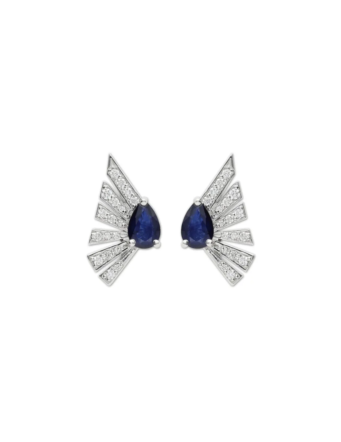 Pendientes de oro blanco 1ª Ley (750 mmas) con zafiro y diamantes. Una joya arquitectónica con un elegante aspecto moderno.