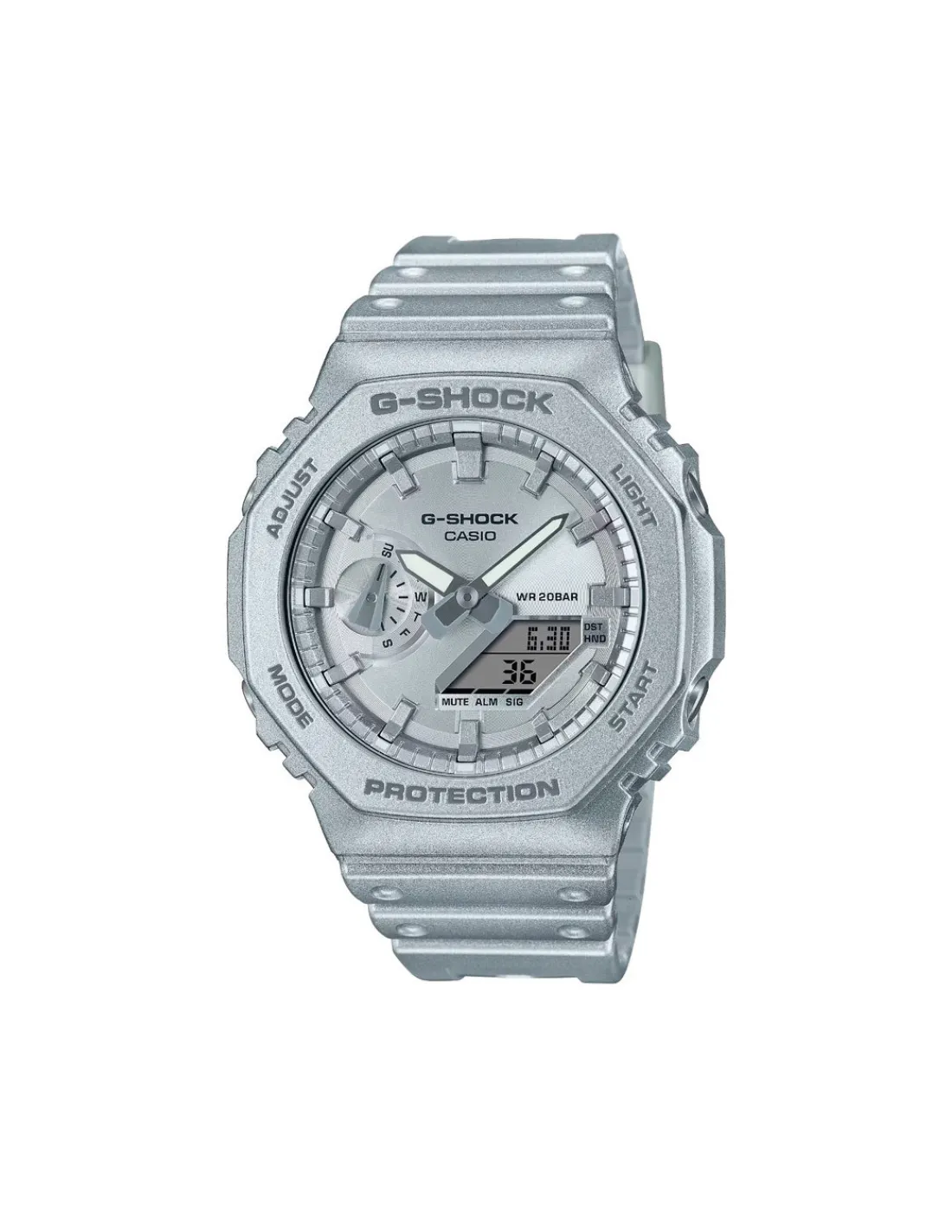 Reloj Casio G-Shock GA-2100FF-8AER con caja de carbono/resina, esfera plata y correa de resina. Sumergible 200 metros. Movimiento de cuarzo japonés.
