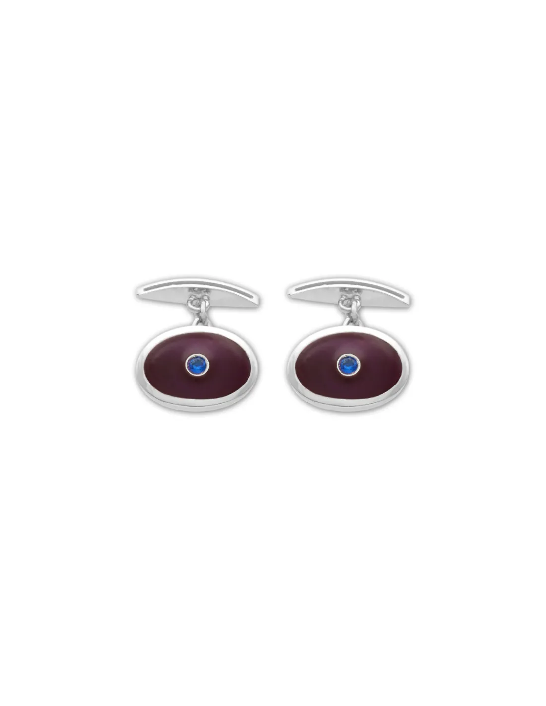 Gemelos de plata 1ª Ley (925 mmas) ovalados con esmalte burdeos y zafiro sintético.