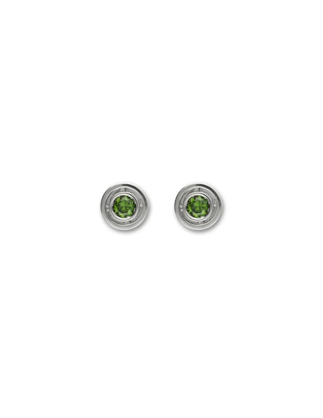 Pendientes de oro blanco 1ª Ley (750 mmas) combinado con un diamante verde en el centro engastado en boquilla. Un pendiente sencillo que aporta elegancia y color. Cierre de palillo y presión.