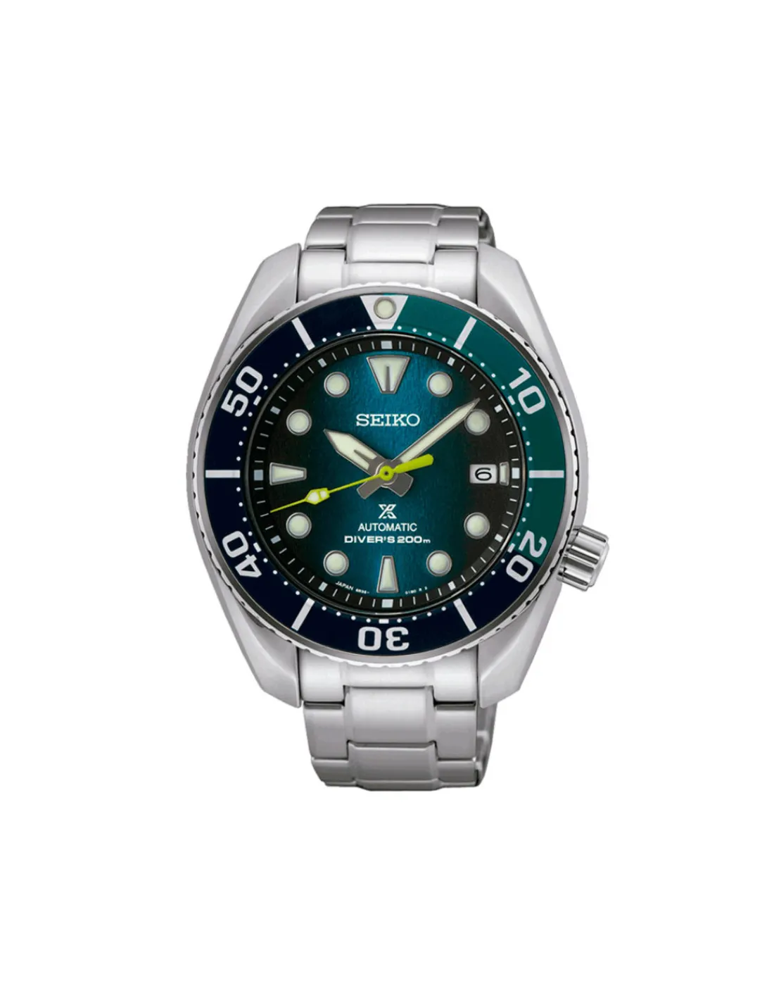 Reloj Seiko Prospex King Sumo EU Exclusive Edición Limitada para hombre con caja de acero de 45 mm, esfera azul y bisel de cerámica, cristal de zafiro combinado con brazalete de acero. Es una edición limitada de 2.000 unidades y es exclusiva para Europa. Este reloj viene con una correa adicional de silicona. Movimiento automático japonés calibre 6R35.