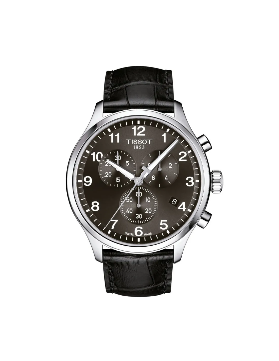 Reloj Tissot Crono XL Classic T116.617.16.057.00 para hombre con caja de acero de 45 mm, esfera negra con números árabes y correa de piel negra imitación cocodrilo. Movimiento de cuarzo Swiss Made.