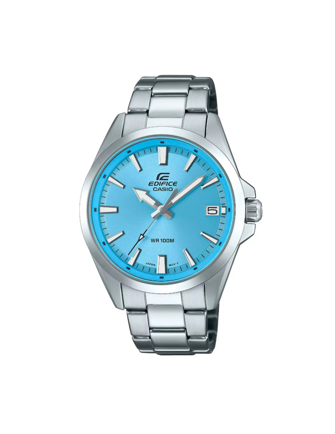 Reloj Casio Edifice EFV-100D-2BVUEF con caja de acero inoxidable, esfera azul y brazalete. Movimiento de cuarzo japonés. Sumergible 100 metros.