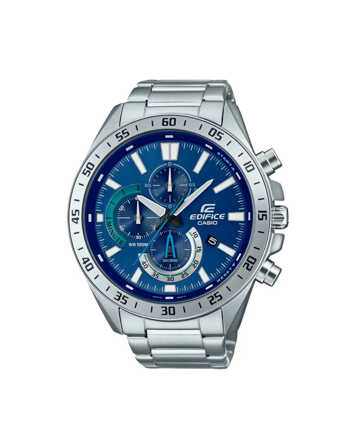 Reloj Casio Edifice EFV-620D-2AVUEF para hombre con caja de acero, esfera azul y brazalete de acero. Movimiento de cuarzo japonés. Sumergible 100 metros.