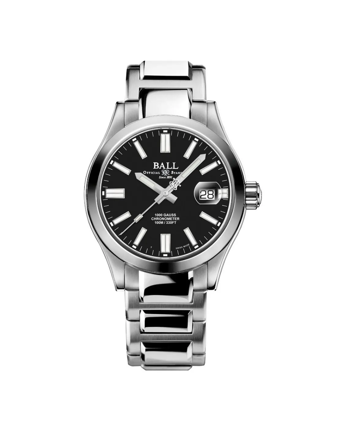 Reloj Ball Engineer III Legend II NM9016C-S5C-BK para hombre con caja de acero, esfera negra y brazalete de acero inoxidable 904L. Movimiento automático Swiss Made con cronómetro certificado COSC.