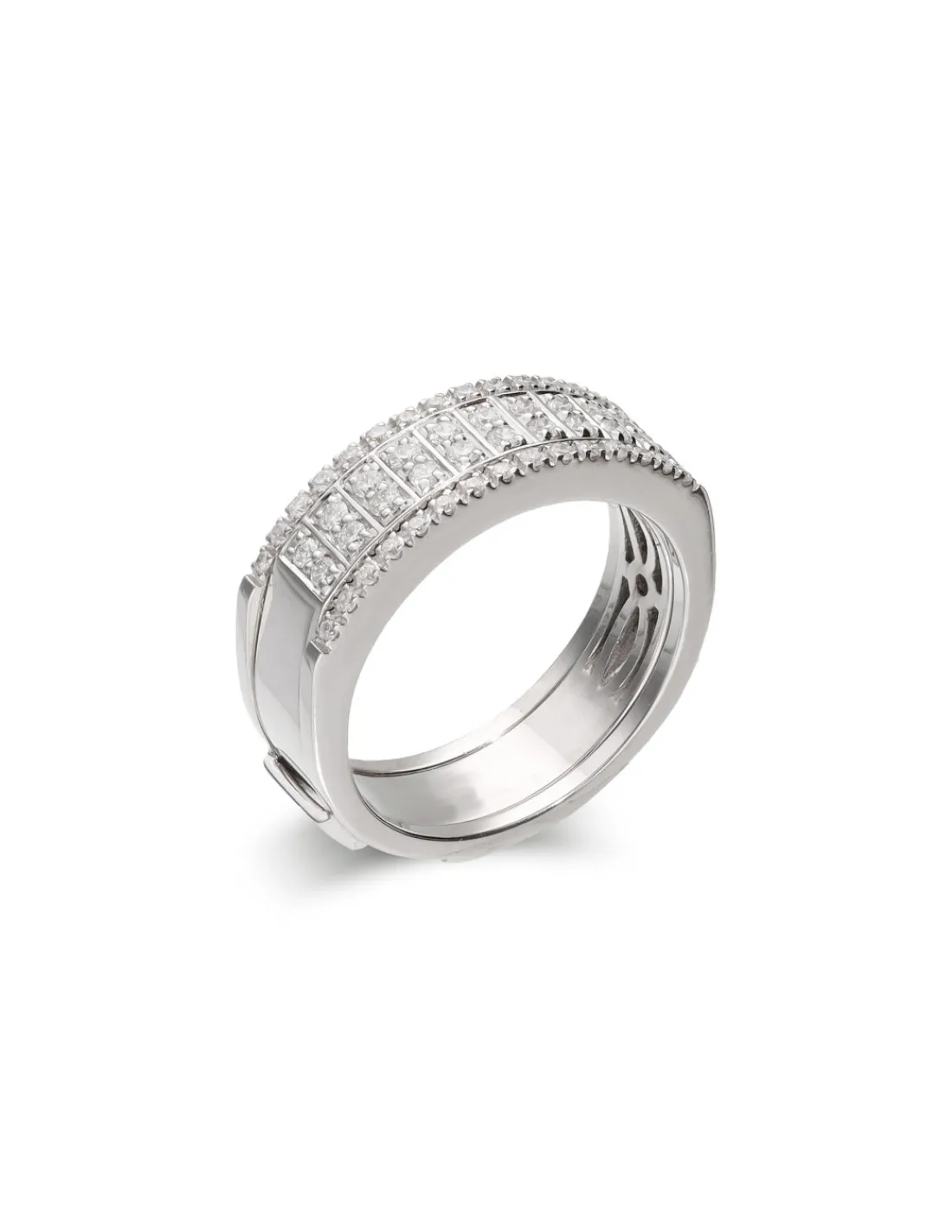 Anillo de oro blanco 1ª Ley (750 mmas) con diamantes y diseño desmontable.