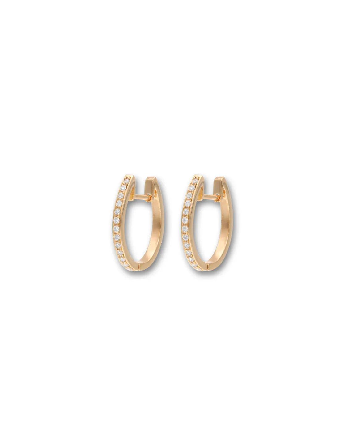 Argollas de oro amarillo 1ª Ley (750 mmas) con forma ovalada y diamantes talla brillante. Una joya con un toque de elegancia sin igual, ideal para día como para noche.