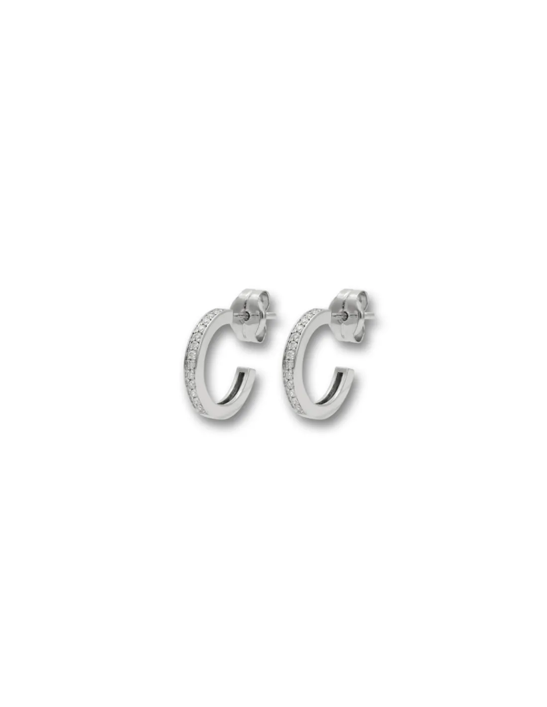 Argollas de oro blanco 1ª Ley (750 mmas) con diamantes talla brillante. Una joya muy versátil y chic que te hará brillar a diario.