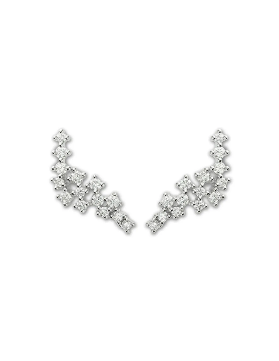 Pendientes de oro blanco 1ª Ley (750 mmas) con diamantes talla brillante que recorren de manera dinámica el lóbulo de la oreja. Un diseño con forma de racimo que aporta un toque innovador.