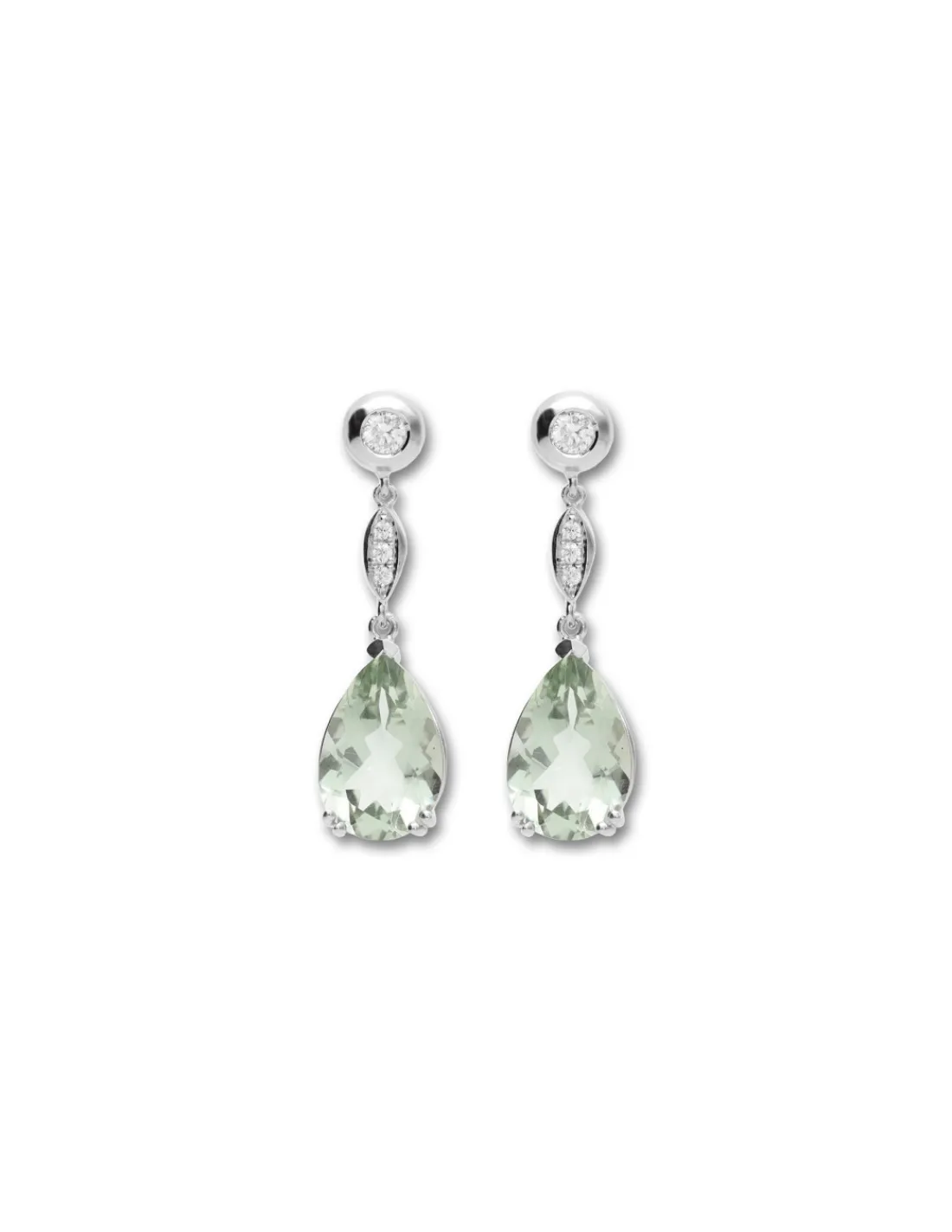 Pendientes de plata 1ª Ley (925 mmas) con circonitas y amatista verde talla pera. Una joya que irradia luminosidad y transmite valor.