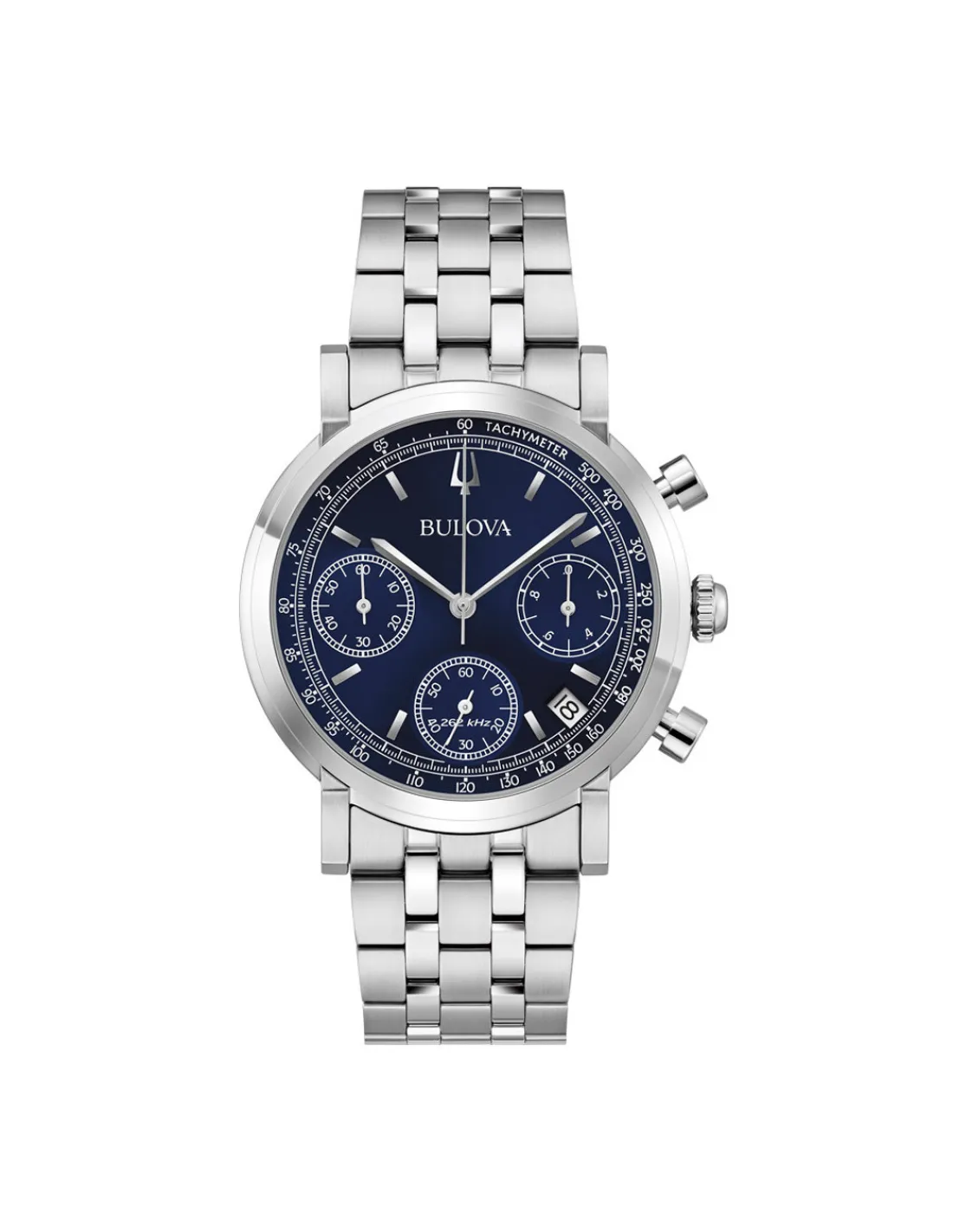 Reloj Bulova Classic Misc para hombre con caja de acero de 39 mm de diámetro, esfera color azul y cristal de zafiro combinado con brazalete de acero. Movimiento de cuarzo y cronógrafo..