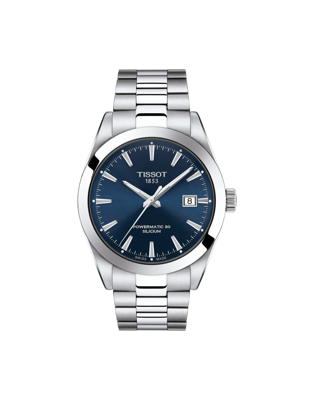 Reloj Tissot Gentleman Powermatic 80 T127.407.11.041.00 para hombre con caja de acero, esfera azul y brazalete de acero. Movimiento automático Swiss Made con espiral de silicio que cuenta con hasta 80 horas de reserva de marcha.
