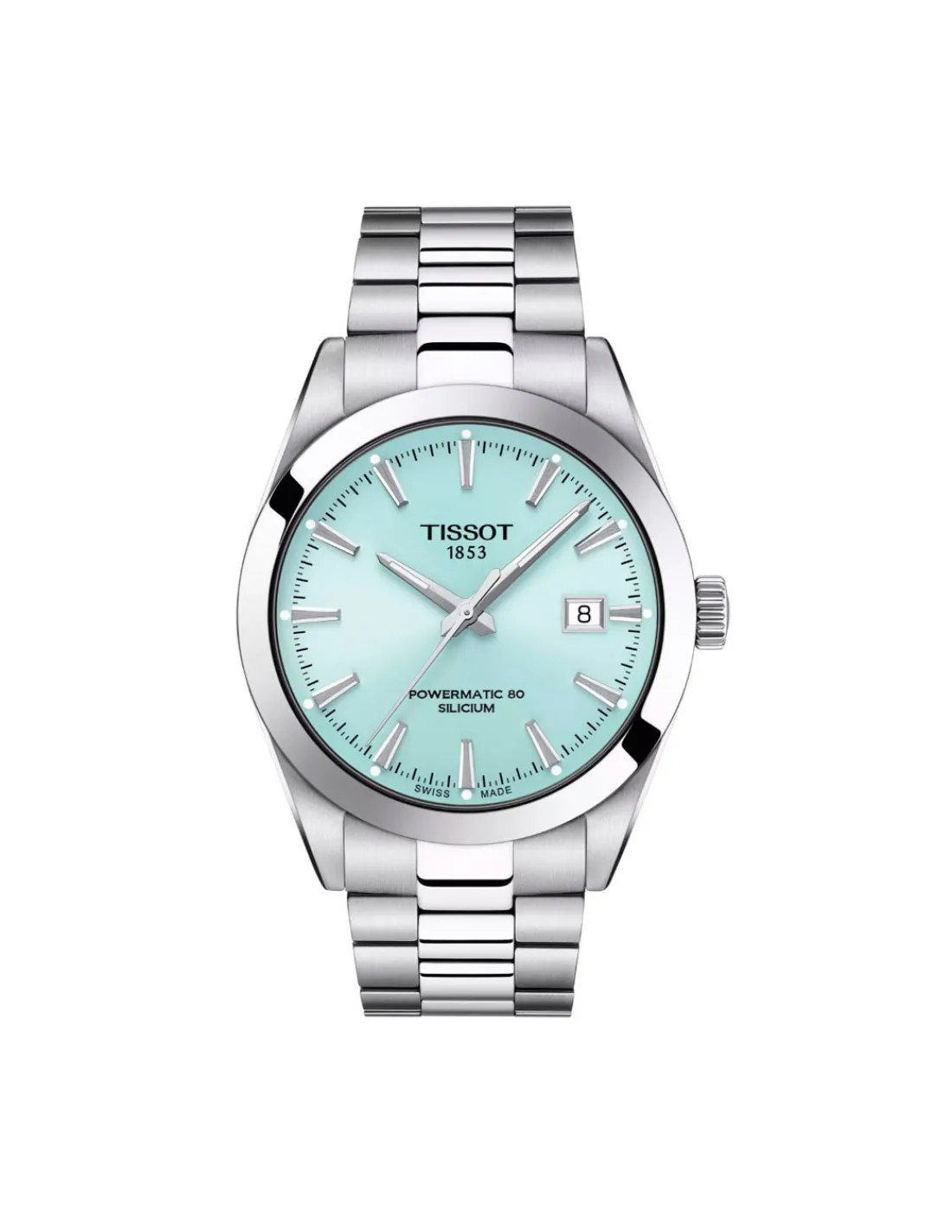 Reloj Tissot Gentleman Powermatic 80 T127.407.11.351.00 para hombre con caja de acero inoxidable, esfera azul hielo y brazalete de acero. Movimiento automático Swiss Made con espiral de silicio que cuenta con hasta 80 horas de reserva de marcha.