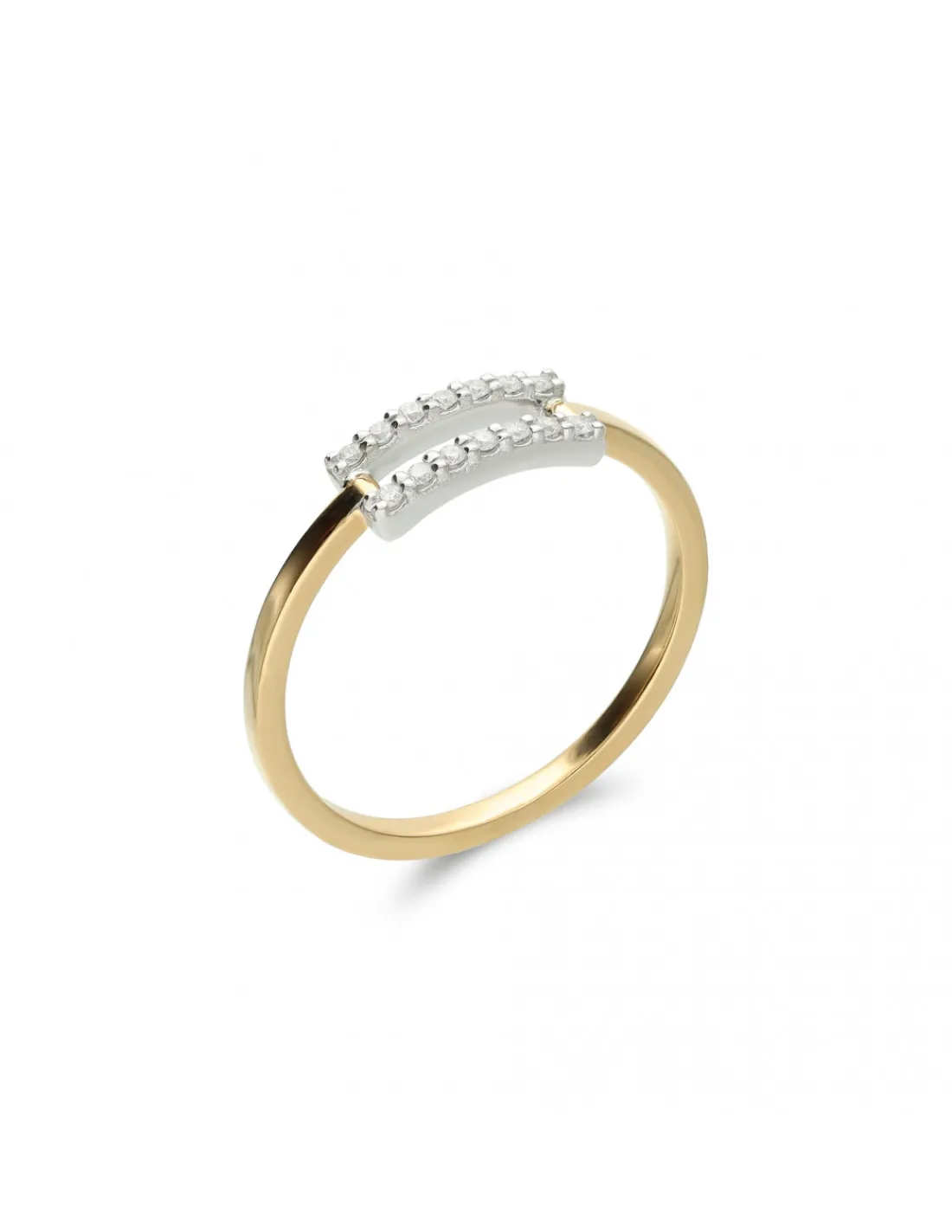 Anillo de oro amarillo-blanco 1ª Ley (750 mmas) con diamantes talla brillante. Una pieza minimalista perfecta para combinar con otros anillos y usar en el día a día.