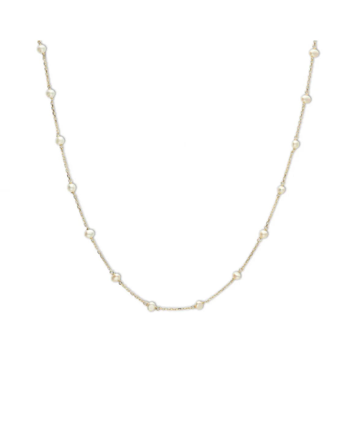 Gargantilla de oro amarillo 1ª Ley (750 mmas) con perlas cultivadas. Una pieza minimalista perfecta para combinar con otras joyas. Longitud 40 cm.