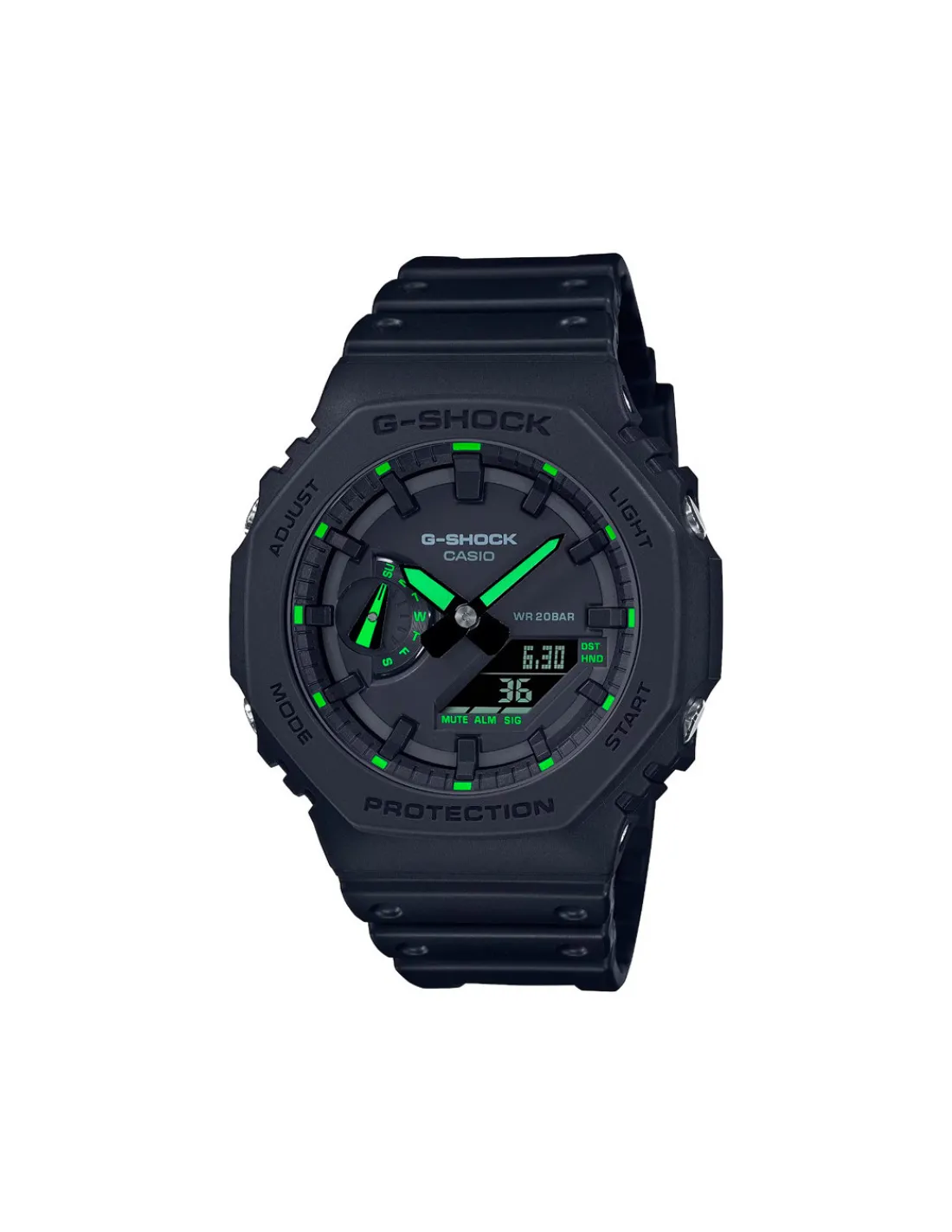 Reloj Casio G-Shock GA-2100-1A3ER con caja de carbono/resina, esfera negra y correa de resina. Sumergible 200 metros. Movimiento de cuarzo japonés.