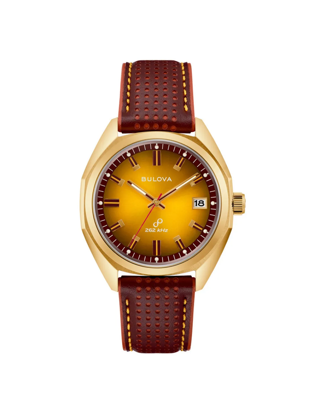 Reloj Bulova Precisionist JET STAR para hombre con caja de acero de 40 mm, esfera color yellow gradation y cristal de zafiro combinado con correa de piel. Movimiento de cuarzo.