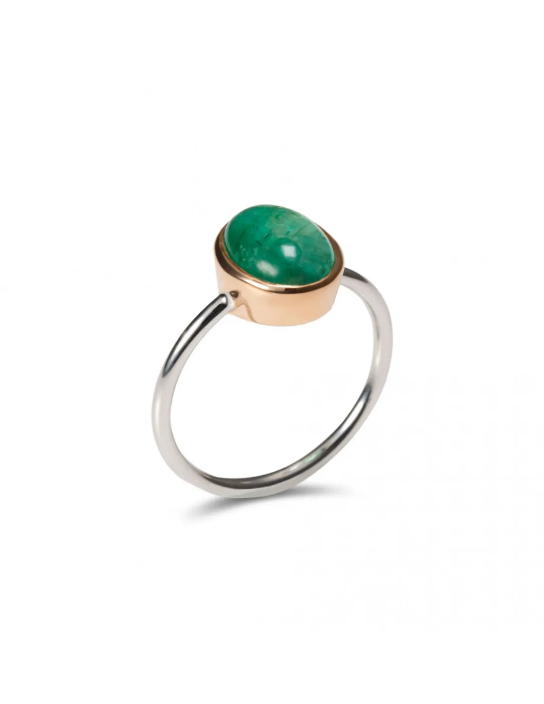 Sortija de plata y oro de 1º Ley con esmeralda cabujón ovalada.