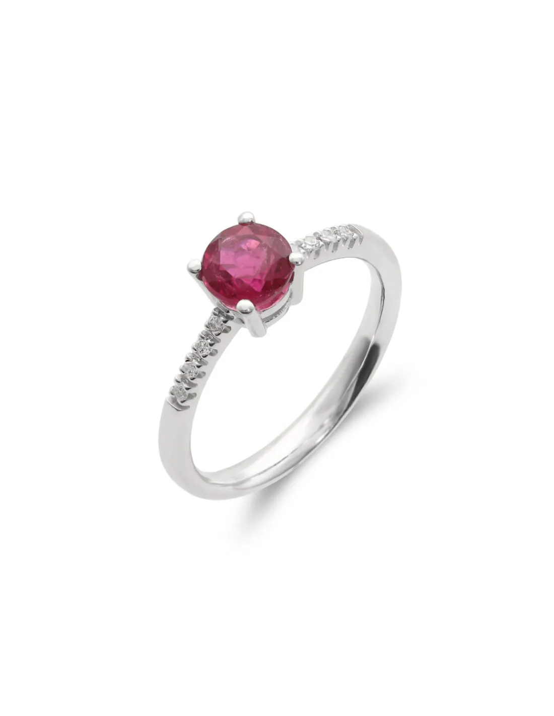 Anillo de oro blanco 1ª Ley (750 mmas) con turmalina redonda engastada en cuatro garras y diamantes talla brillante engastados en grano. Talla 12.