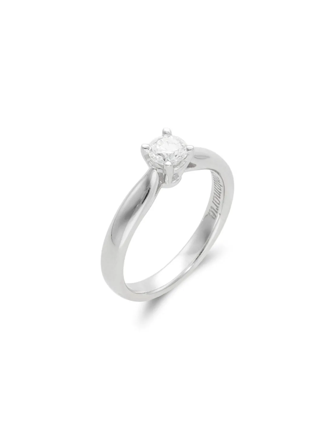 Anillo-Solitario de oro blanco 1ª Ley (750 mmas) con diamante talla brillante en el centro engastado en cuatro garras.