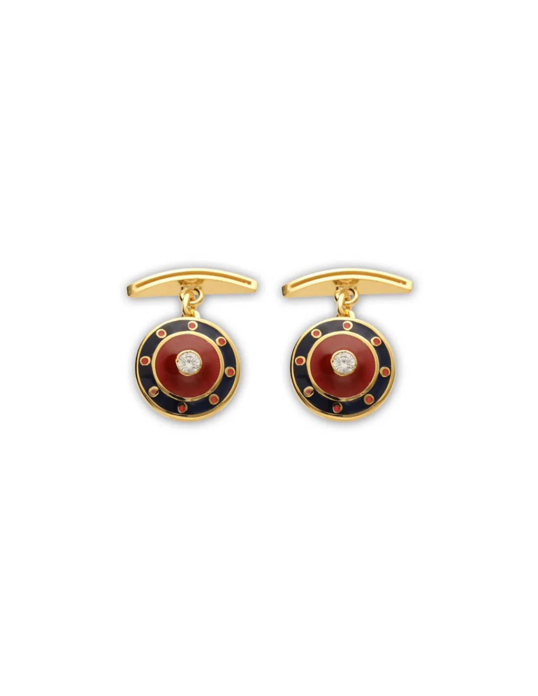 Gemelos de plata 1ª Ley (925 mmas) chapados en oro amarillo combinados con circonita y esmalte rojo y azul.