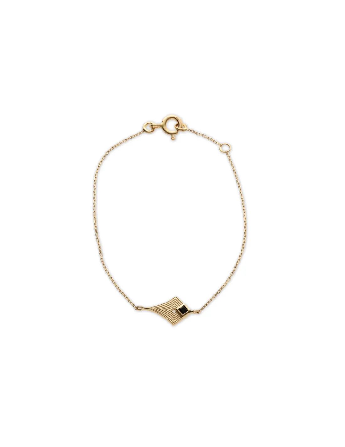 Pulsera de oro amarillo 9 kt (375 mmas) con rombo y ónix engastado. Un básico para looks de día y de noche.
