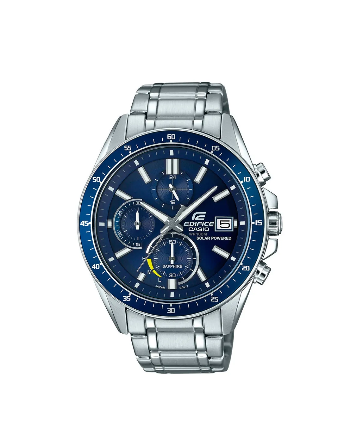 Reloj Casio Edifice EFS-S510D-2AVUEF para hombre con caja de acero, esfera azul y brazalete de acero. Movimiento solar japonés. Sumergible 100 metros.