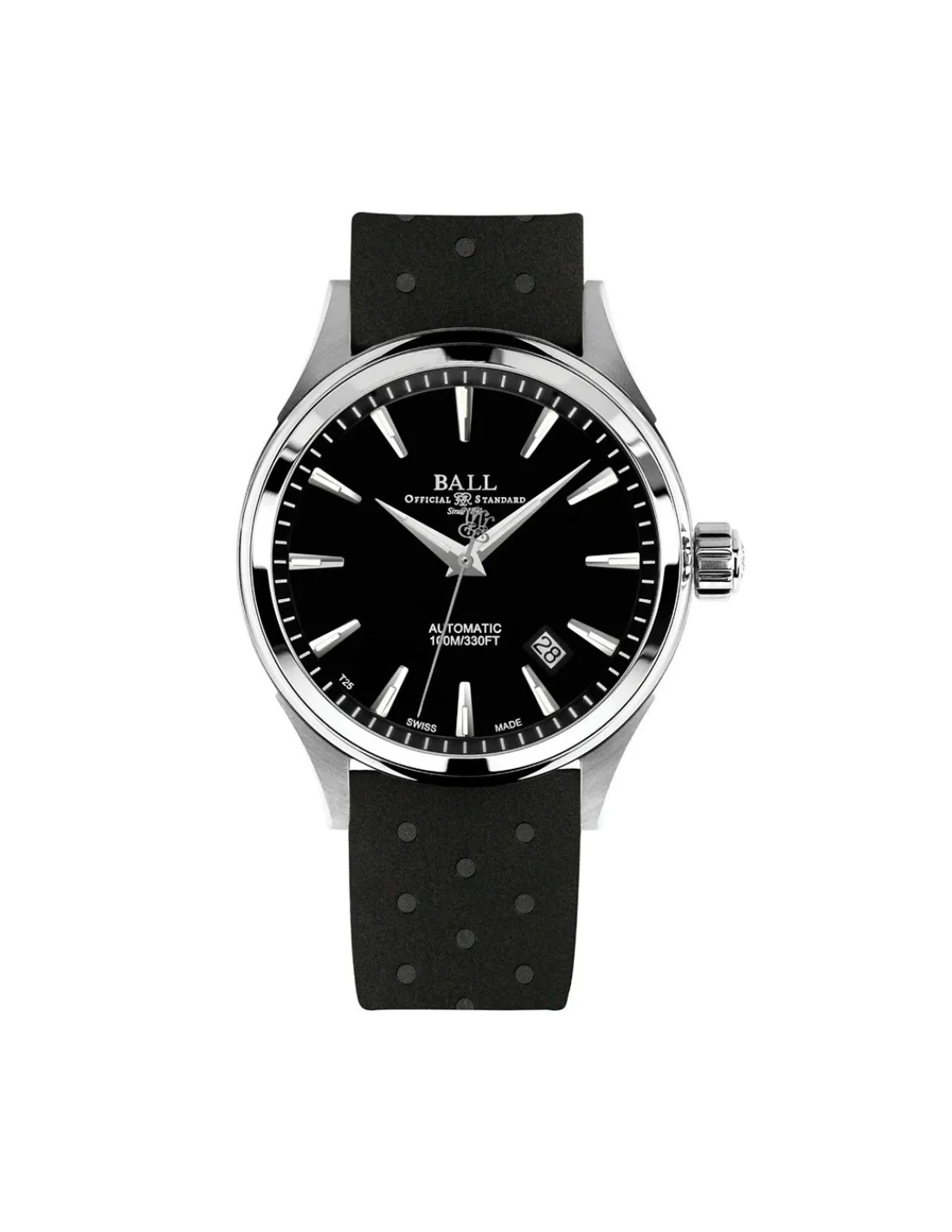 Reloj Ball Fireman Victory NM2098C-P3J-BK para hombre con caja de acero, esfera negra y correa de caucho. Movimiento automático Swiss Made y 38 horas de reserva de marcha.